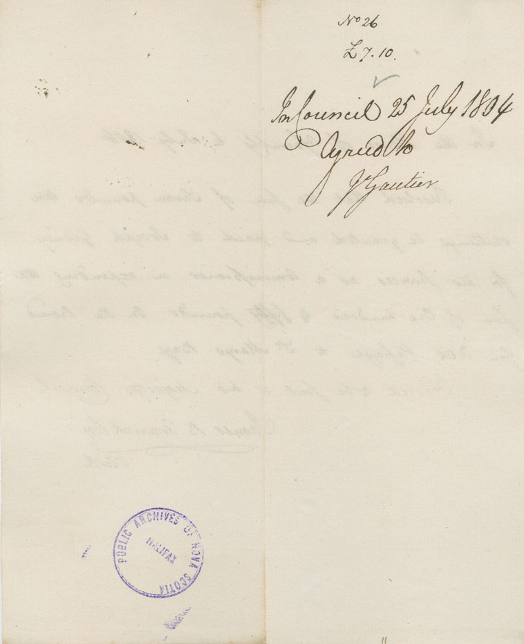 Reference: Nova Scotia House of Assembly Nova Scotia Archives RG 5 Series A volume 11 number 36
