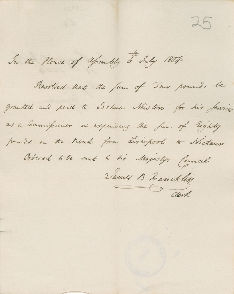 Reference: Nova Scotia House of Assembly Nova Scotia Archives RG 5 Series A volume 11 number 36