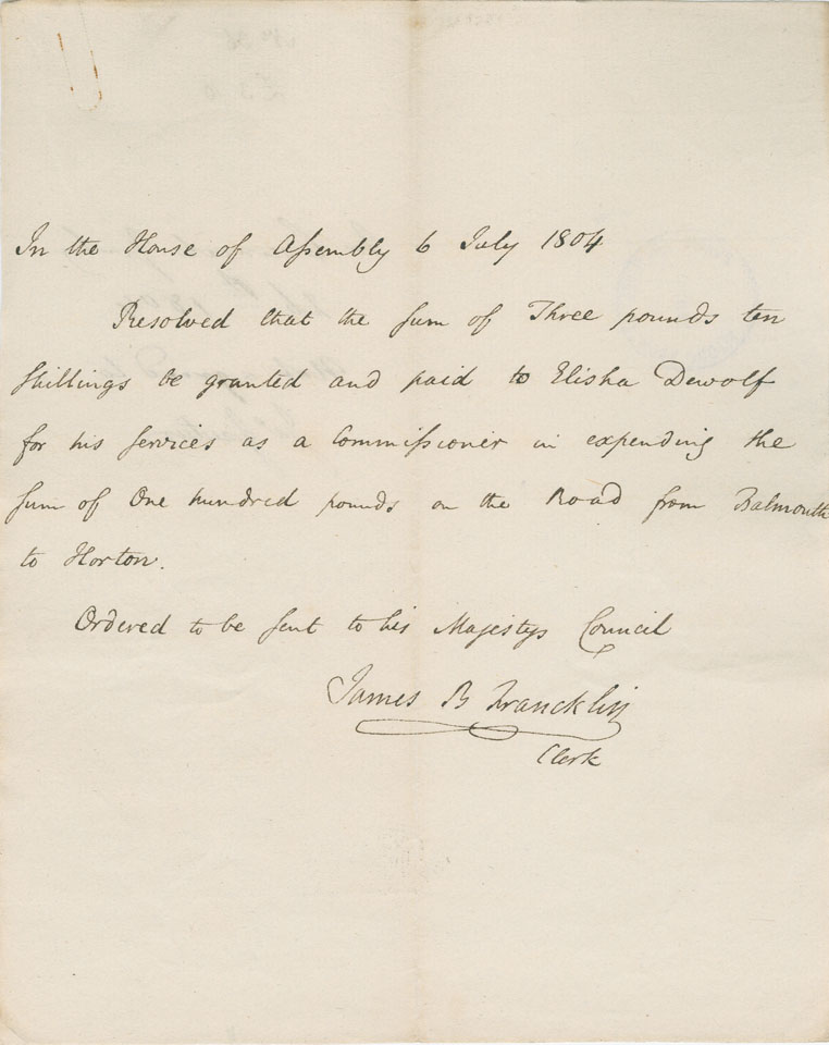 Reference: Nova Scotia House of Assembly Nova Scotia Archives RG 5 Series A volume 11 number 36