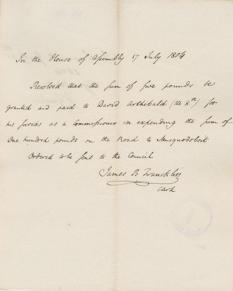 Reference: Nova Scotia House of Assembly Nova Scotia Archives RG 5 Series A volume 11 number 60