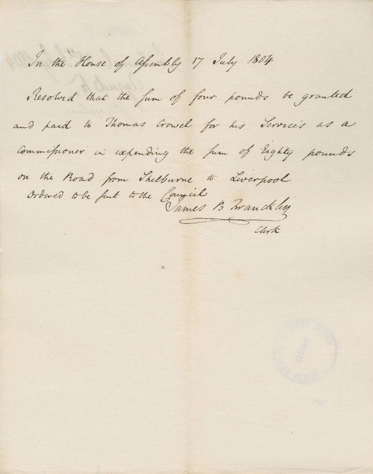 Reference: Nova Scotia House of Assembly Nova Scotia Archives RG 5 Series A volume 11 number 60