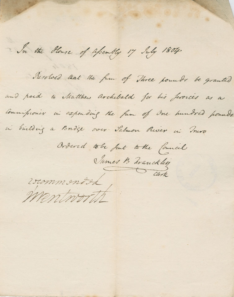 Reference: Nova Scotia House of Assembly Nova Scotia Archives RG 5 Series A volume 11 number 60