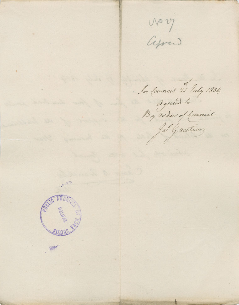 Reference: Nova Scotia House of Assembly Nova Scotia Archives RG 5 Series A volume 11 number 60