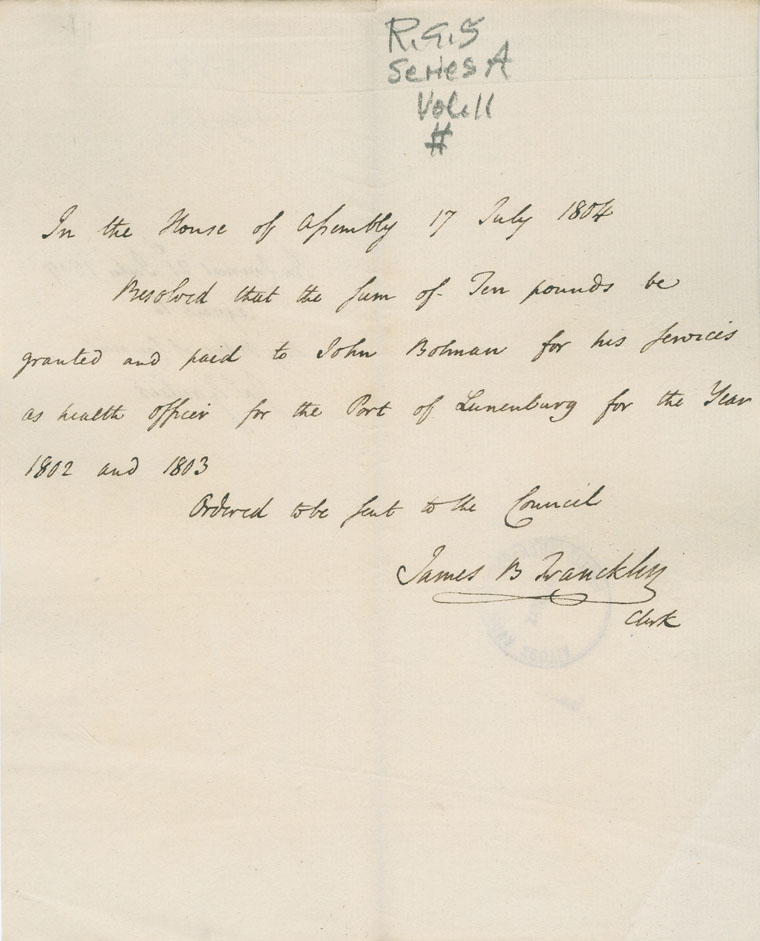 Reference: Nova Scotia House of Assembly Nova Scotia Archives RG 5 Series A volume 11 number 60