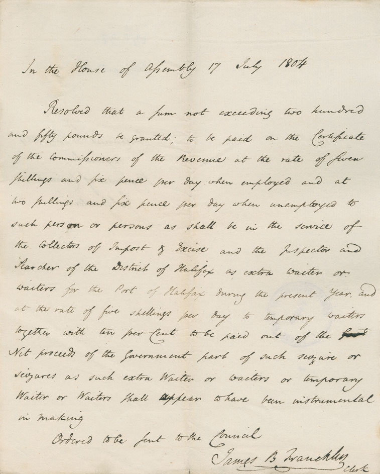 Reference: Nova Scotia House of Assembly Nova Scotia Archives RG 5 Series A volume 11 number 60