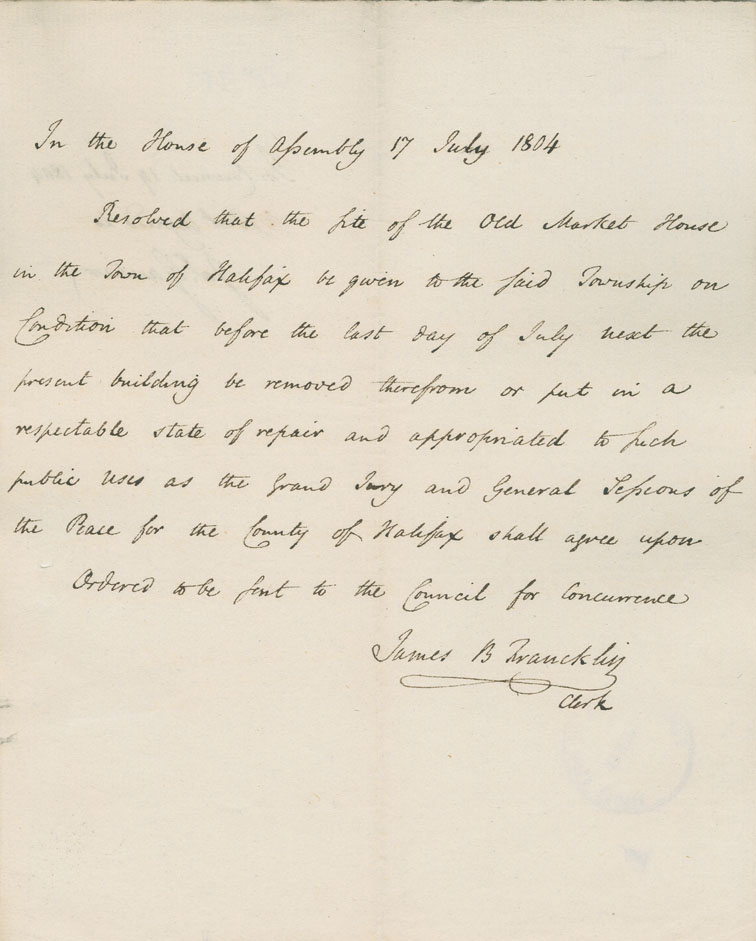 Reference: Nova Scotia House of Assembly Nova Scotia Archives RG 5 Series A volume 11 number 60