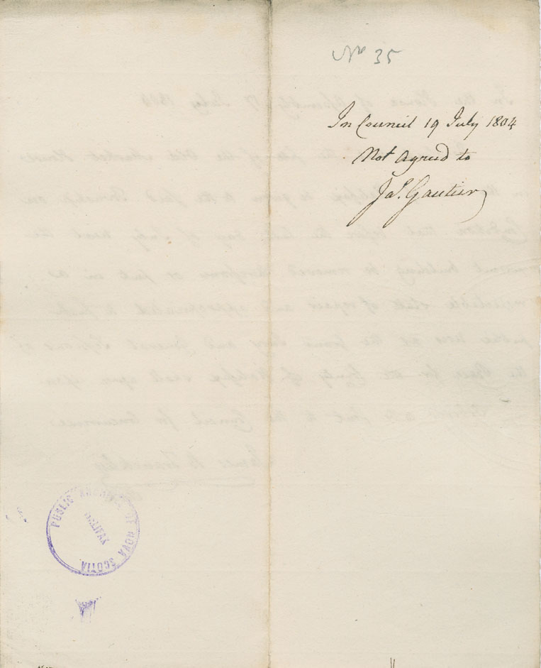 Reference: Nova Scotia House of Assembly Nova Scotia Archives RG 5 Series A volume 11 number 60