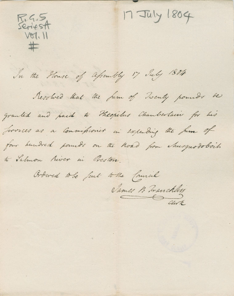 Reference: Nova Scotia House of Assembly Nova Scotia Archives RG 5 Series A volume 11 number 60