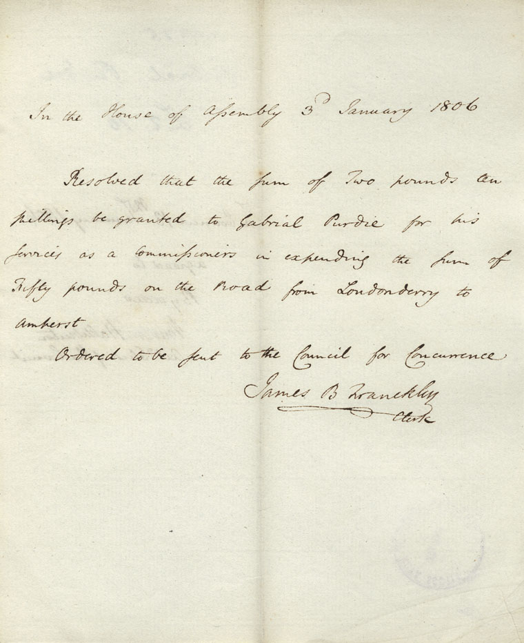 Reference: Nova Scotia House of Assembly Nova Scotia Archives RG 5 Series A volume 13 number 4