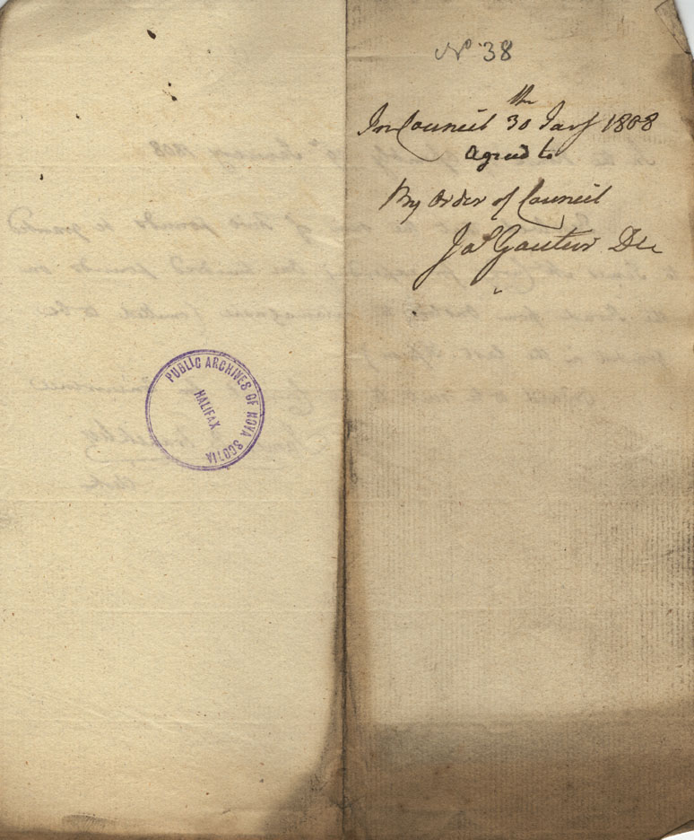 Reference: Nova Scotia House of Assembly Nova Scotia Archives RG 5 Series A volume 15 number 42