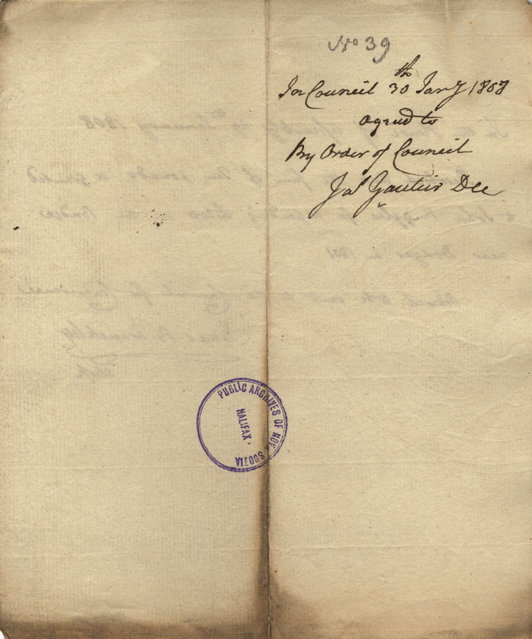 Reference: Nova Scotia House of Assembly Nova Scotia Archives RG 5 Series A volume 15 number 42