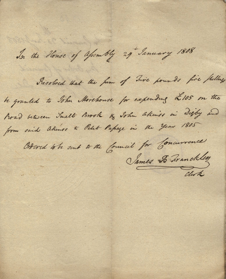 Reference: Nova Scotia House of Assembly Nova Scotia Archives RG 5 Series A volume 15 number 42