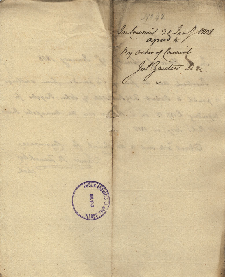 Reference: Nova Scotia House of Assembly Nova Scotia Archives RG 5 Series A volume 15 number 42