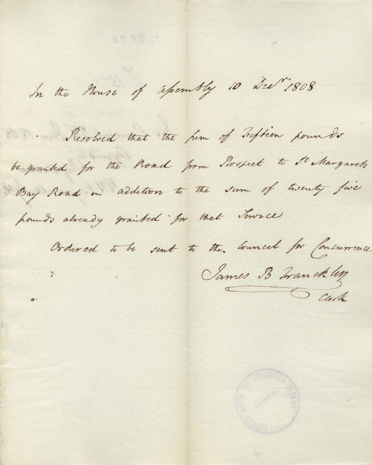 Reference: Nova Scotia House of Assembly Nova Scotia Archives RG 5 Series A volume 15 number 130