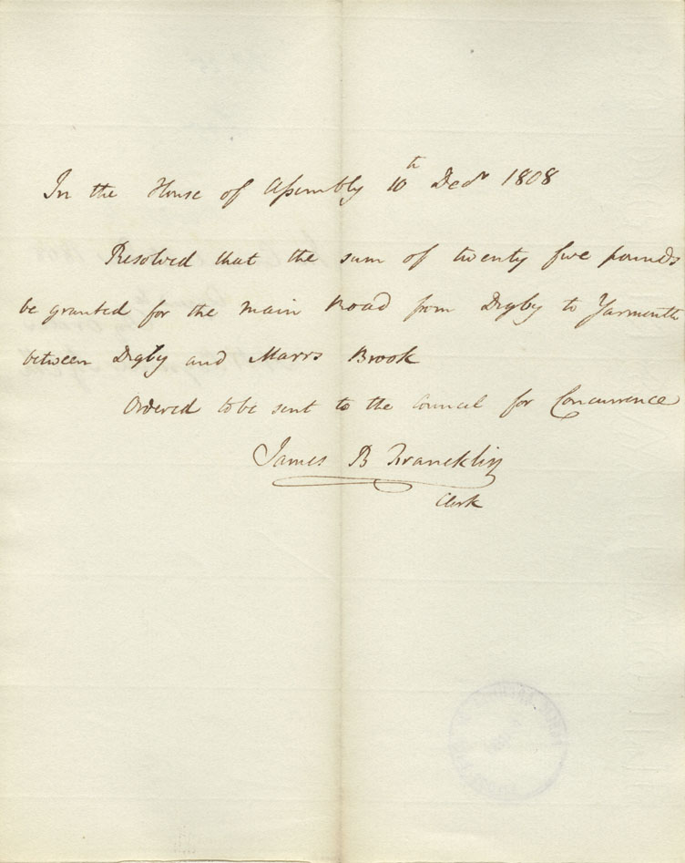 Reference: Nova Scotia House of Assembly Nova Scotia Archives RG 5 Series A volume 15 number 130