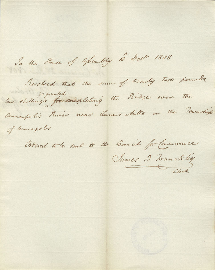 Reference: Nova Scotia House of Assembly Nova Scotia Archives RG 5 Series A volume 15 number 130