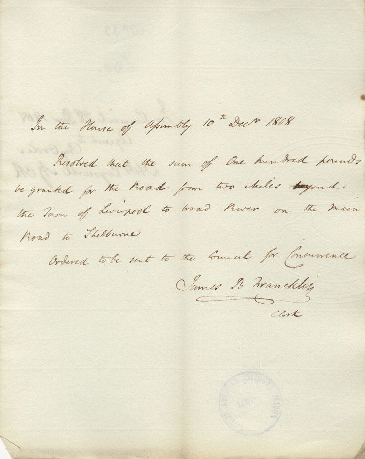Reference: Nova Scotia House of Assembly Nova Scotia Archives RG 5 Series A volume 15 number 130