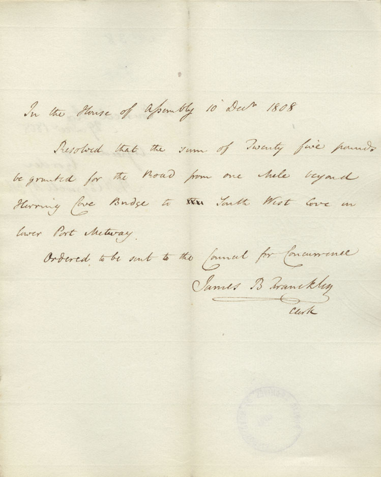 Reference: Nova Scotia House of Assembly Nova Scotia Archives RG 5 Series A volume 15 number 130