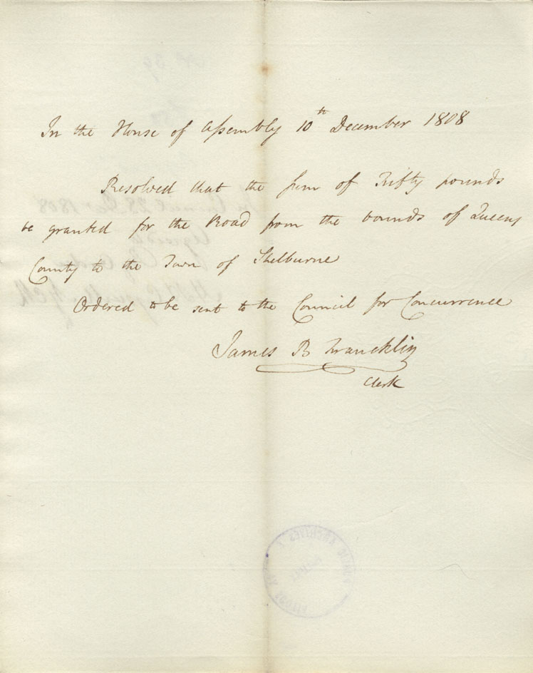 Reference: Nova Scotia House of Assembly Nova Scotia Archives RG 5 Series A volume 15 number 130