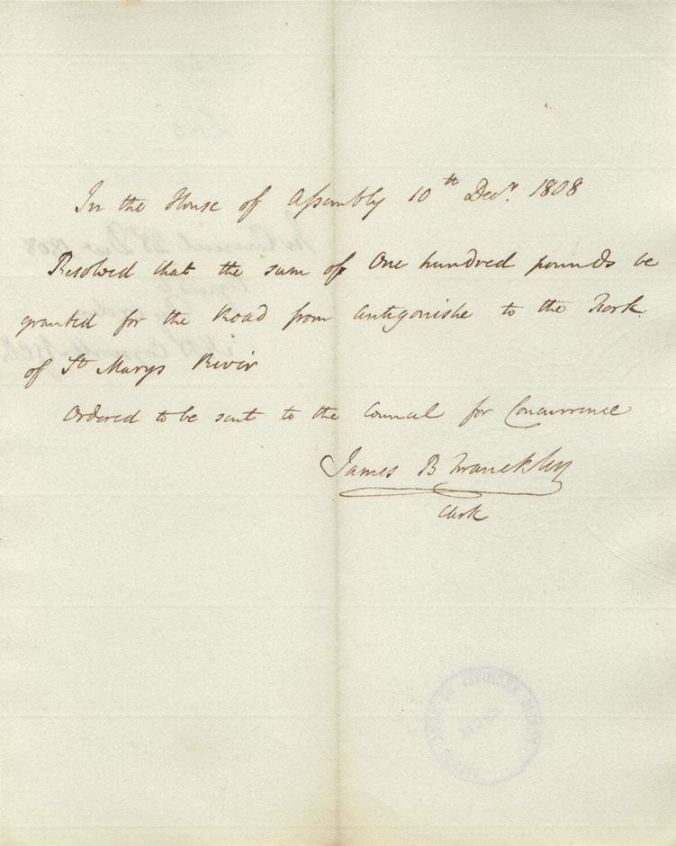 Reference: Nova Scotia House of Assembly Nova Scotia Archives RG 5 Series A volume 15 number 130