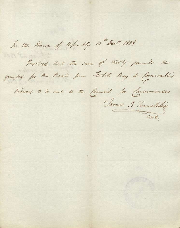 Reference: Nova Scotia House of Assembly Nova Scotia Archives RG 5 Series A volume 15 number 130