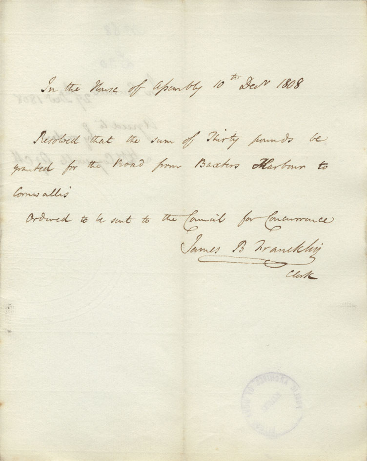 Reference: Nova Scotia House of Assembly Nova Scotia Archives RG 5 Series A volume 15 number 130