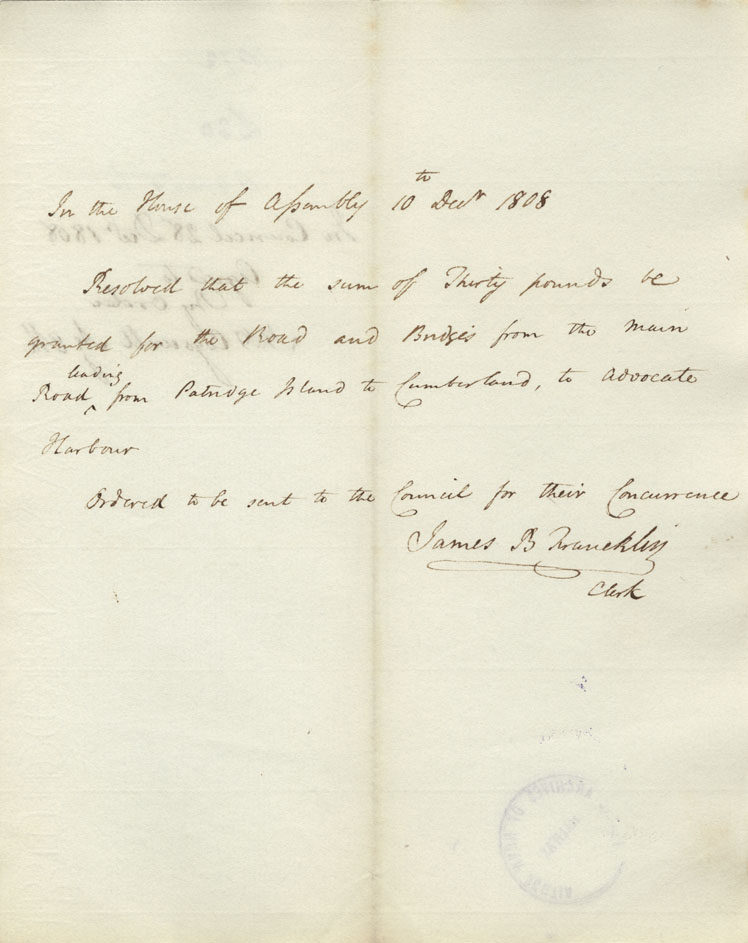 Reference: Nova Scotia House of Assembly Nova Scotia Archives RG 5 Series A volume 15 number 130