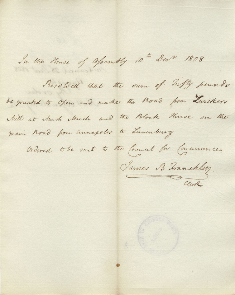 Reference: Nova Scotia House of Assembly Nova Scotia Archives RG 5 Series A volume 15 number 130
