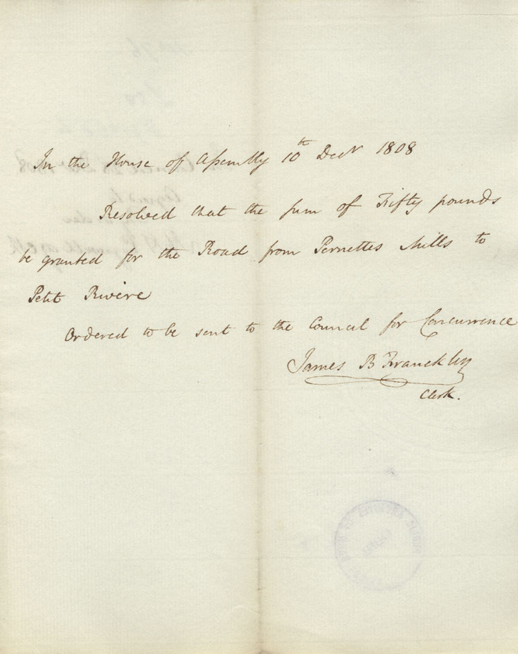 Reference: Nova Scotia House of Assembly Nova Scotia Archives RG 5 Series A volume 15 number 130