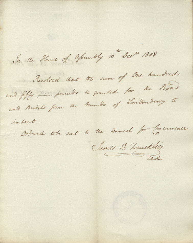 Reference: Nova Scotia House of Assembly Nova Scotia Archives RG 5 Series A volume 15 number 130