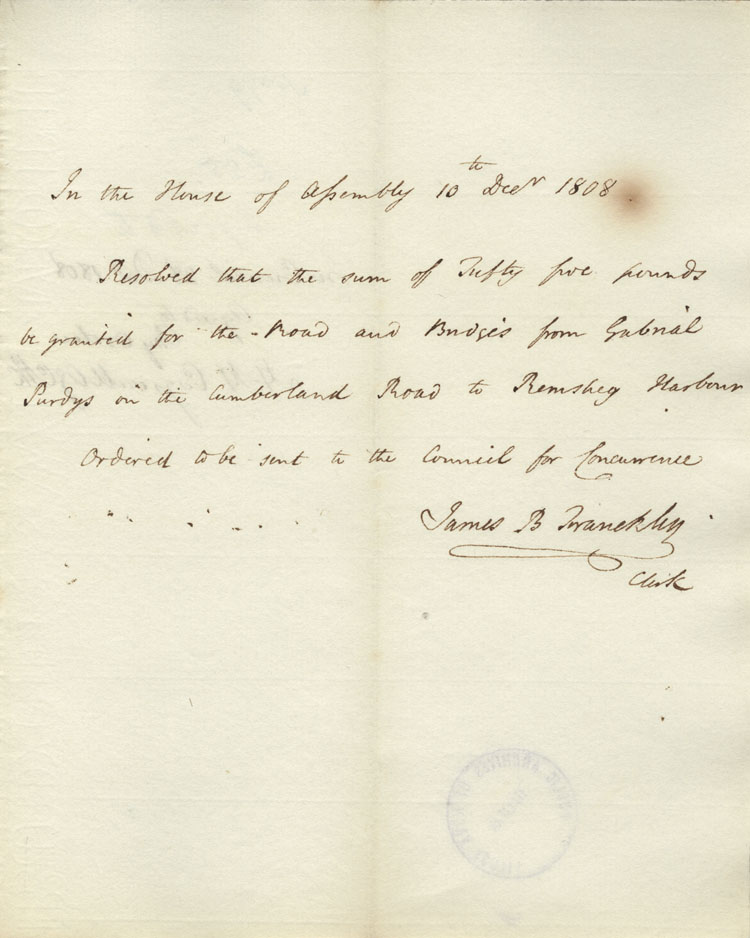 Reference: Nova Scotia House of Assembly Nova Scotia Archives RG 5 Series A volume 15 number 130