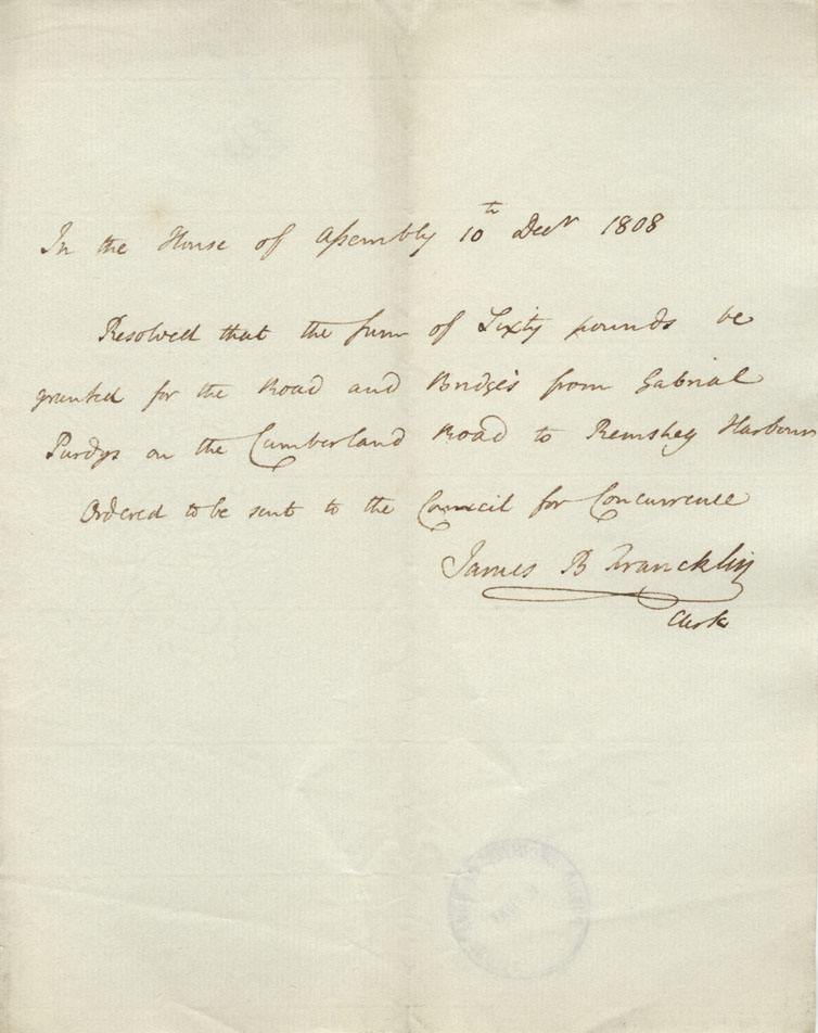 Reference: Nova Scotia House of Assembly Nova Scotia Archives RG 5 Series A volume 15 number 130