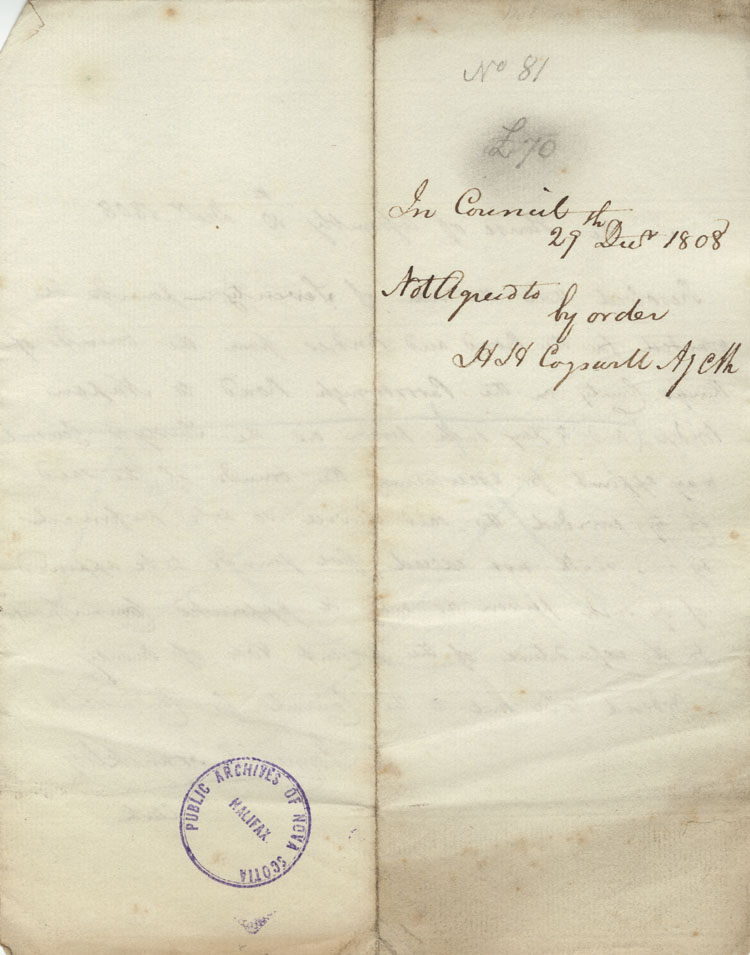 Reference: Nova Scotia House of Assembly Nova Scotia Archives RG 5 Series A volume 15 number 130