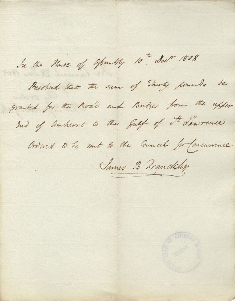 Reference: Nova Scotia House of Assembly Nova Scotia Archives RG 5 Series A volume 15 number 130