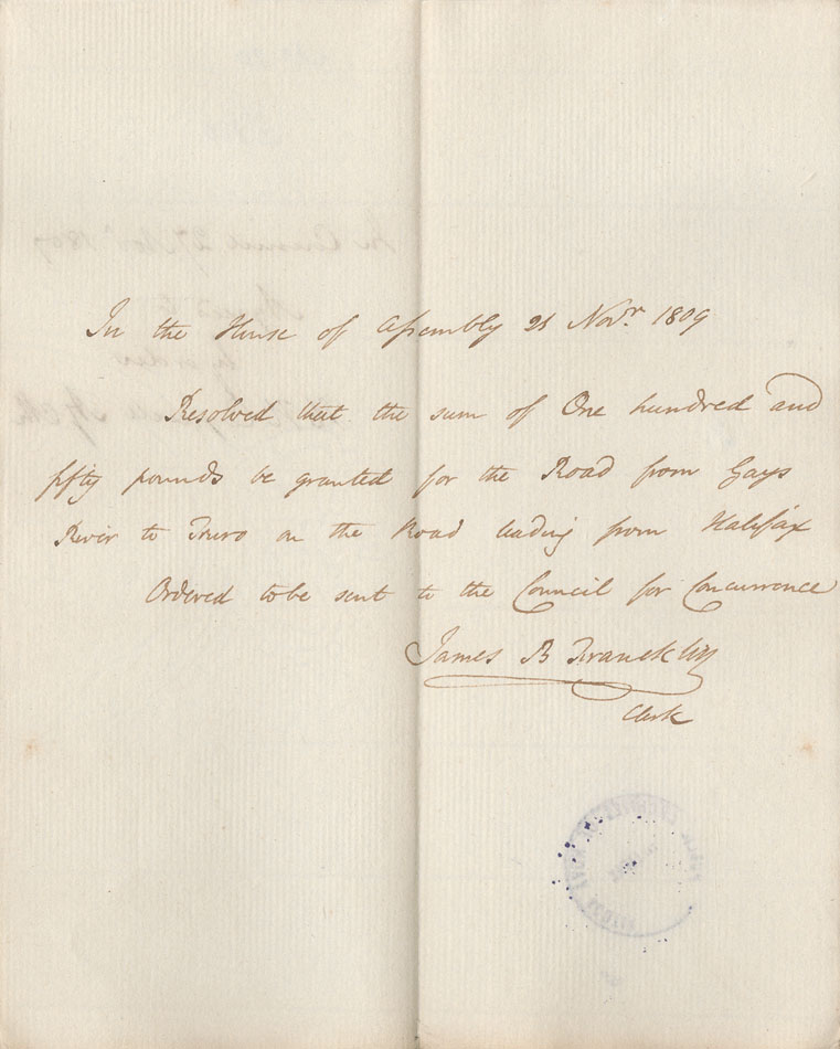 Reference: Nova Scotia House of Assembly Nova Scotia Archives RG 5 Series A volume 16 number 55