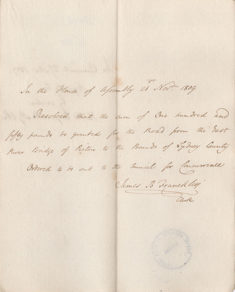 Reference: Nova Scotia House of Assembly Nova Scotia Archives RG 5 Series A volume 16 number 55