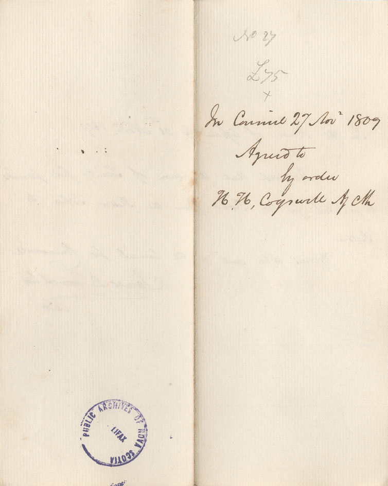Reference: Nova Scotia House of Assembly Nova Scotia Archives RG 5 Series A volume 16 number 55