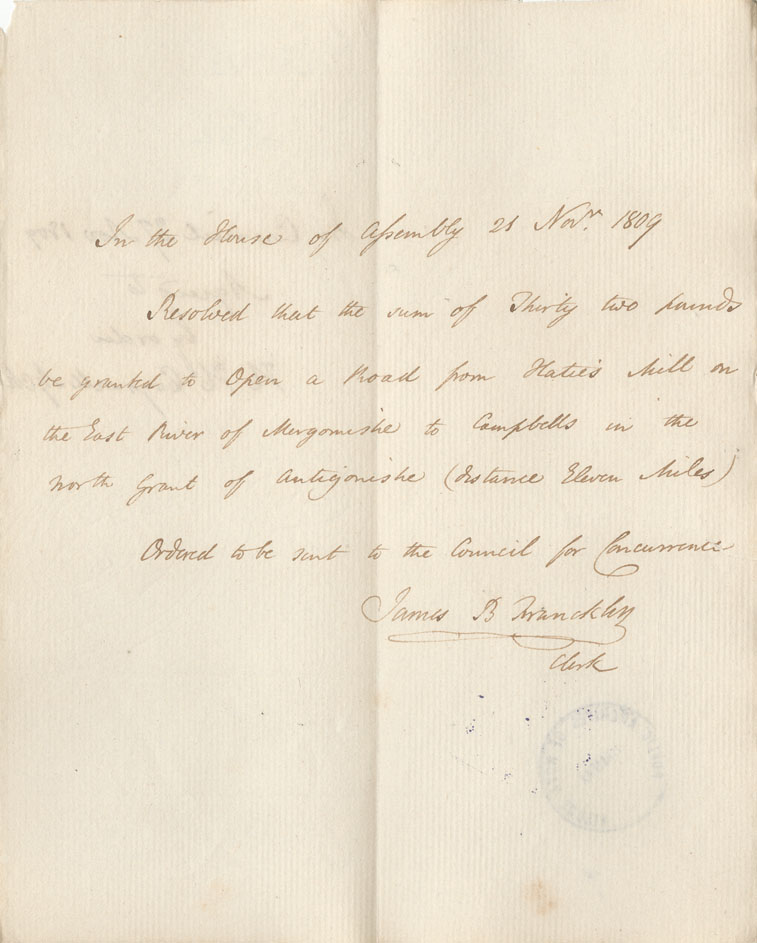 Reference: Nova Scotia House of Assembly Nova Scotia Archives RG 5 Series A volume 16 number 55