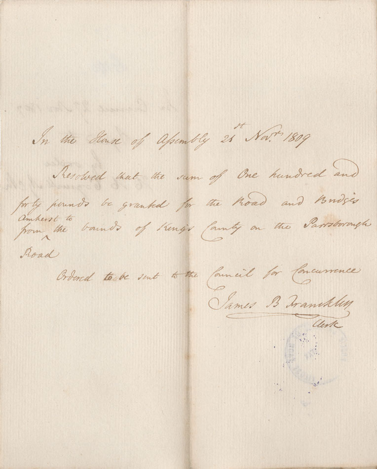 Reference: Nova Scotia House of Assembly Nova Scotia Archives RG 5 Series A volume 16 number 55