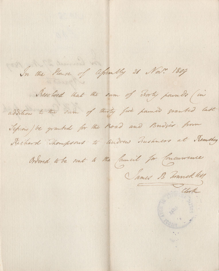 Reference: Nova Scotia House of Assembly Nova Scotia Archives RG 5 Series A volume 16 number 55