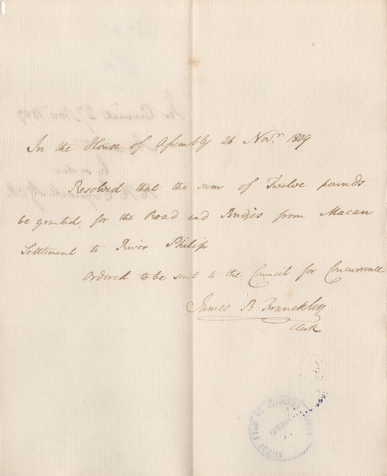 Reference: Nova Scotia House of Assembly Nova Scotia Archives RG 5 Series A volume 16 number 55