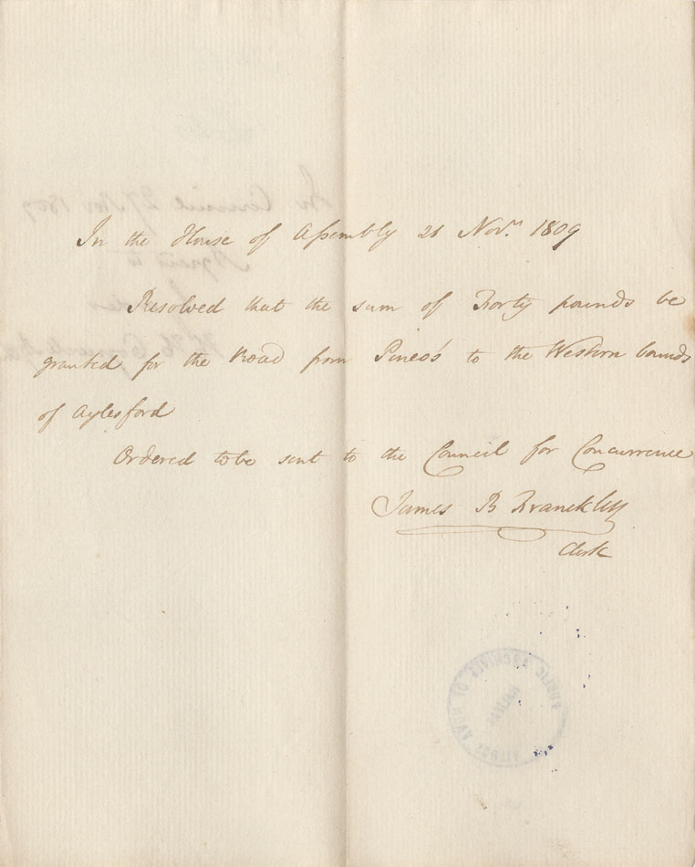 Reference: Nova Scotia House of Assembly Nova Scotia Archives RG 5 Series A volume 16 number 55