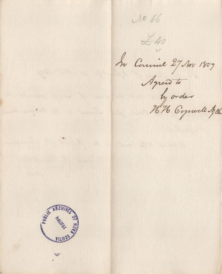 Reference: Nova Scotia House of Assembly Nova Scotia Archives RG 5 Series A volume 16 number 55