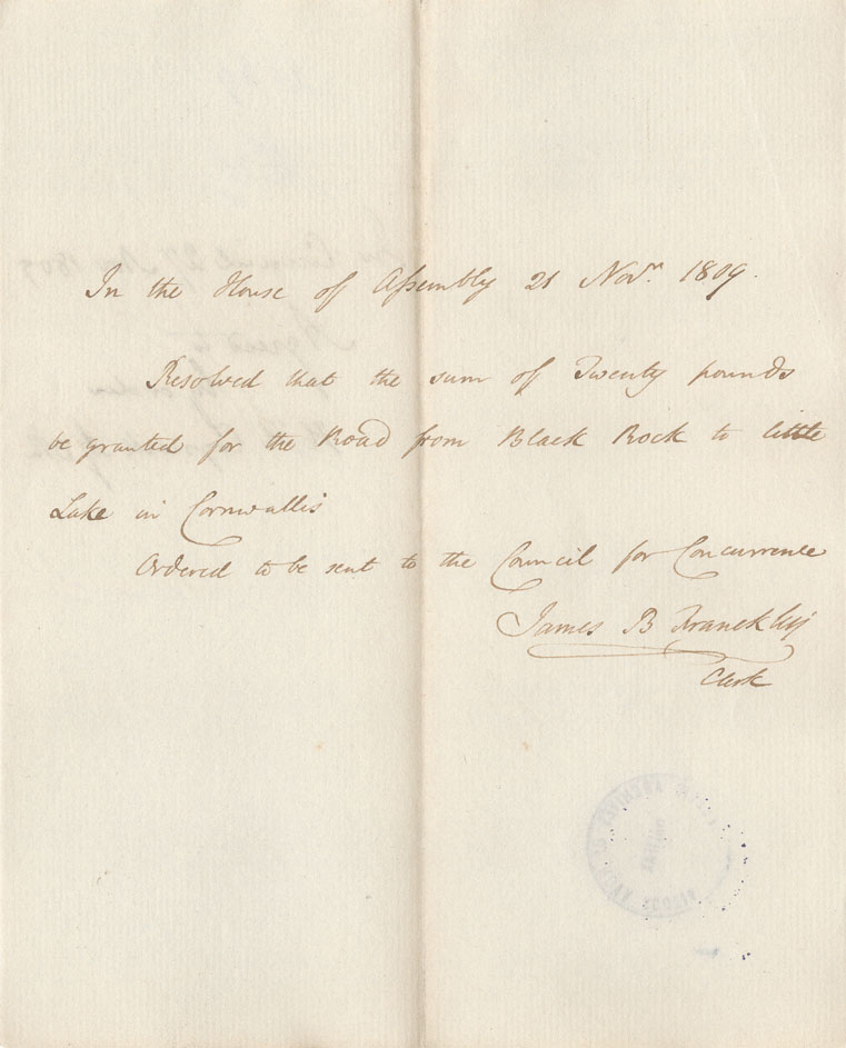 Reference: Nova Scotia House of Assembly Nova Scotia Archives RG 5 Series A volume 16 number 55