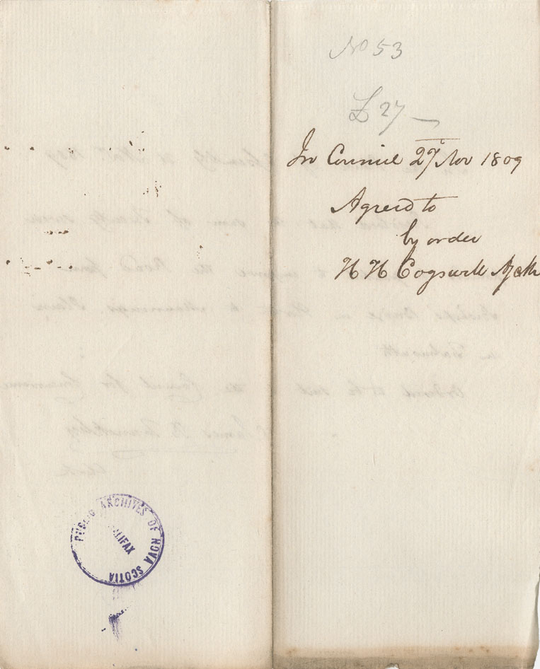 Reference: Nova Scotia House of Assembly Nova Scotia Archives RG 5 Series A volume 16 number 55