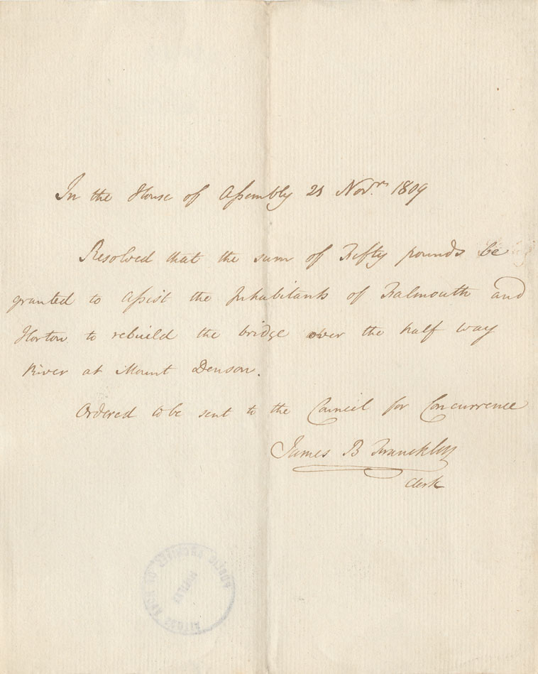 Reference: Nova Scotia House of Assembly Nova Scotia Archives RG 5 Series A volume 16 number 55