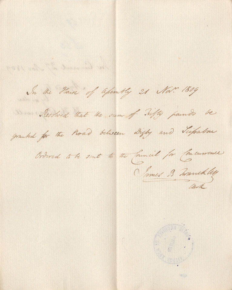 Reference: Nova Scotia House of Assembly Nova Scotia Archives RG 5 Series A volume 16 number 55