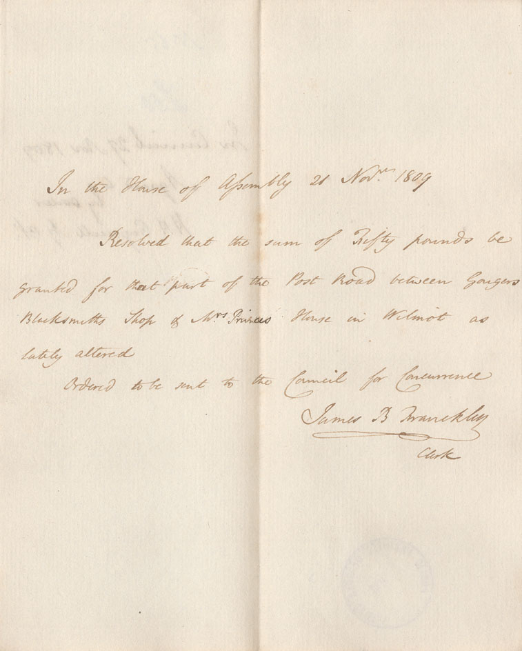 Reference: Nova Scotia House of Assembly Nova Scotia Archives RG 5 Series A volume 16 number 55