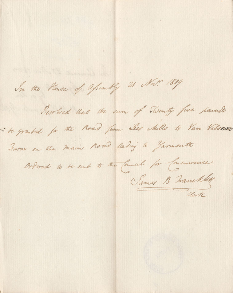 Reference: Nova Scotia House of Assembly Nova Scotia Archives RG 5 Series A volume 16 number 55