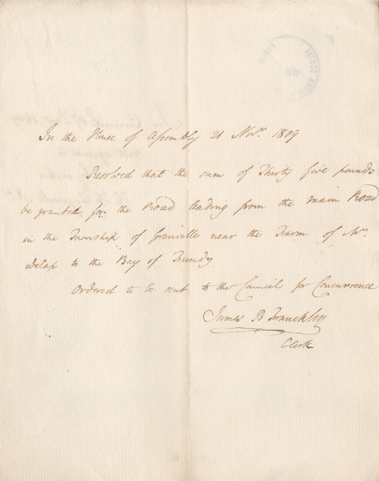 Reference: Nova Scotia House of Assembly Nova Scotia Archives RG 5 Series A volume 16 number 55